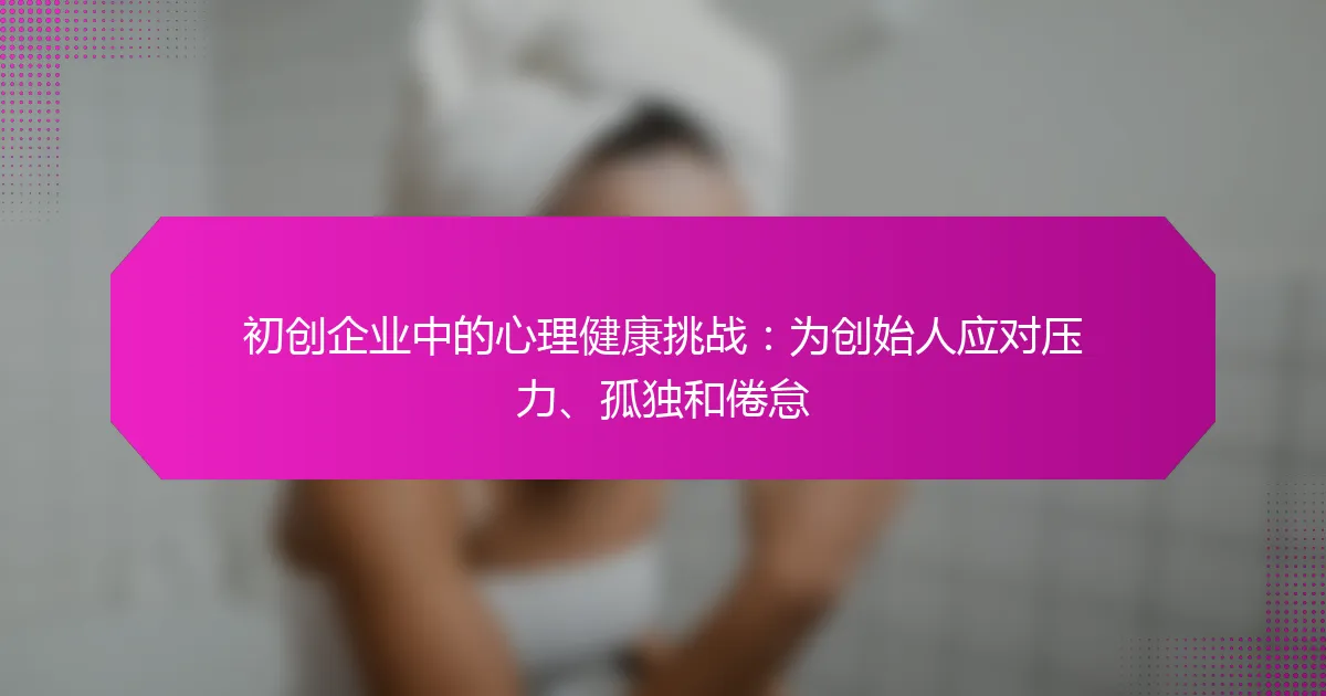 创业公司的创始人常常面临心理健康挑战,包括压力、孤独和倦怠。这些问题源于高压和长时间工作,影响个人的幸福感和商业表现。有效的策略,如建立支持网络、设定现实目标和优先考虑自我关怀,可以帮助应对这些障碍。利用心理健康应用程序和专业咨询等资源对于培养韧性和可持续增长至关重要。 创业公司创始人面临的常见心理健康挑战是什么? 创业公司创始人常常面临的心理健康挑战包括压力、孤独和倦怠。这些问题源于高压、长时间工作和创业的情感负担。 压力源于不断的决策和财务压力,常常导致焦虑和生产力下降。孤独可能由于创业生活的要求而发生,导致与同龄人之间的孤立感和失联感。倦怠是一种独特的特征,源于长期的压力和疲惫,影响个人的幸福感和商业表现。 统计数据显示,超过70%的创业者经历心理健康问题,突显了支持系统的紧迫性。解决这些挑战对于可持续增长和创始人的长期健康至关重要。 压力在创业环境中如何表现? 创业环境中的压力常常表现为创始人的焦虑、倦怠和孤独。高压情境导致慢性压力,影响决策和整体心理健康。创始人经常面临长时间工作和不确定性,这可能加剧孤独感。研究表明,72%的创业公司创始人经历心理健康挑战,突显了支持网络和应对策略的必要性。解决这些问题对于维持生产力和促进健康的工作文化至关重要。 孤独在创业者心理健康中扮演什么角色? 孤独对创业者的心理健康有显著影响,增加了孤独感和压力。这种孤独通常源于创业环境的高要求,创始人经常长时间工作并面临高度不确定性。因此,他们可能忽视社交互动,导致心理健康下降。研究显示,经历孤独的创业者更容易出现焦虑和抑郁,这可能妨碍他们的决策能力和整体商业表现。建立支持网络可以减轻这些影响,促进韧性和更好的心理健康结果。 倦怠如何影响决策和生产力? 倦怠显著妨碍决策和生产力,损害认知功能并降低动机。经历倦怠的创始人常常面临注意力下降,导致判断失误和反应迟缓。研究表明,长期压力可能使生产力下降多达50%,影响整体商业表现。因此,识别和解决倦怠对于维持有效领导和创业公司的运营效率至关重要。 哪些普遍因素导致创业公司的心理健康挑战? 高压力、孤独和倦怠是导致创业公司心理健康挑战的普遍因素。创始人常常面临成功的巨大压力,导致慢性压力。由于许多创始人独自工作或在小团队中工作,孤独感可能会加剧。由于长时间工作和缺乏工作与生活的平衡,倦怠普遍存在,严重影响心理健康。解决这些问题对于可持续增长和创始人的健康至关重要。 长时间工作如何影响心理健康? 长时间工作对心理健康有显著危害,导致创业公司创始人压力、孤独和倦怠增加。长时间工作导致慢性疲劳、生产力下降和与个人生活的脱节感。研究表明,每周工作超过60小时的创始人更容易出现焦虑和抑郁。此外,缺乏社交互动加剧了孤独感,形成了有害的循环。解决工作与生活的平衡对于维持心理健康和整体生产力在创业环境中至关重要。