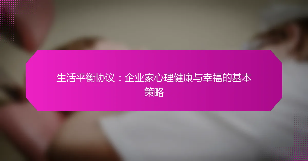 实现工作与生活的平衡对企业家来说至关重要,这有助于提升心理健康并防止倦怠。本文探讨了减少压力和焦虑的策略、有效时间管理的重要性以及设定界限的好处。优先考虑这种平衡的企业家通常报告称专注力和工作满意度有所提高。实施这些策略可以带来更强的韧性和整体福祉。 工作与生活的平衡如何影响企业家的心理健康? 工作与生活的平衡通过减少压力和防止倦怠显著提升企业家的心理健康。维持这种平衡有助于培养韧性、促进创造力并支持整体福祉。优先考虑工作与生活平衡的企业家报告称焦虑水平较低,专注力提高。研究表明,有效的时间管理和设定界限可以带来更好的心理健康结果。例如,一项调查显示,60%的实施工作与生活平衡策略的企业家体验到了更高的工作满意度和减少的情感疲惫。 企业家面临的常见心理健康挑战是什么? 企业家常常面临的心理健康挑战包括压力、焦虑和倦怠。这些问题源于高压环境、长时间工作和对创新的持续需求。压力可能导致身体健康问题,而焦虑则常常表现为自我怀疑。倦怠是由于长期压力而没有适当恢复所导致的,影响生产力和整体福祉。解决这些挑战对企业的可持续成功至关重要。 为什么压力管理对企业主至关重要? 有效的压力管理对企业主维持生产力和心理健康至关重要。高压力水平可能导致焦虑和倦怠,负面影响决策和整体成功。 优先考虑工作与生活的平衡使企业家能够充电,促进创造力和韧性。研究显示,72%的企业家经历显著压力,突显了有效应对策略的必要性。 定期休息、锻炼和正念练习可以显著减少压力。这些独特的属性促进了更健康的心态,这对应对创业挑战至关重要。 最终,有效管理压力不仅提升个人健康,还推动业务增长和可持续性。 企业家可以使用哪些技巧有效管理压力? 企业家可以通过实施时间管理、正念练习和设定界限等技巧有效管理压力。优先处理任务有助于减少压倒感,而正念可以增强专注力和情感韧性。建立清晰的工作与生活界限可以防止倦怠并促进更健康的生活方式。 焦虑和不确定性如何影响商业决策? 焦虑和不确定性可以显著妨碍商业决策,损害判断力并增加风险厌恶。企业家常常经历加剧的压力,这可能导致优柔寡断或过于谨慎的策略。因此,这可能抑制创新和增长机会。有效的工作与生活平衡策略,如正念和时间管理,可以减轻这些影响,促进更好的决策。研究表明,优先考虑心理健康的企业家更有可能做出自信、战略性的选择,从而最终提升商业成功。 哪些策略可以帮助减少商业环境中的焦虑?